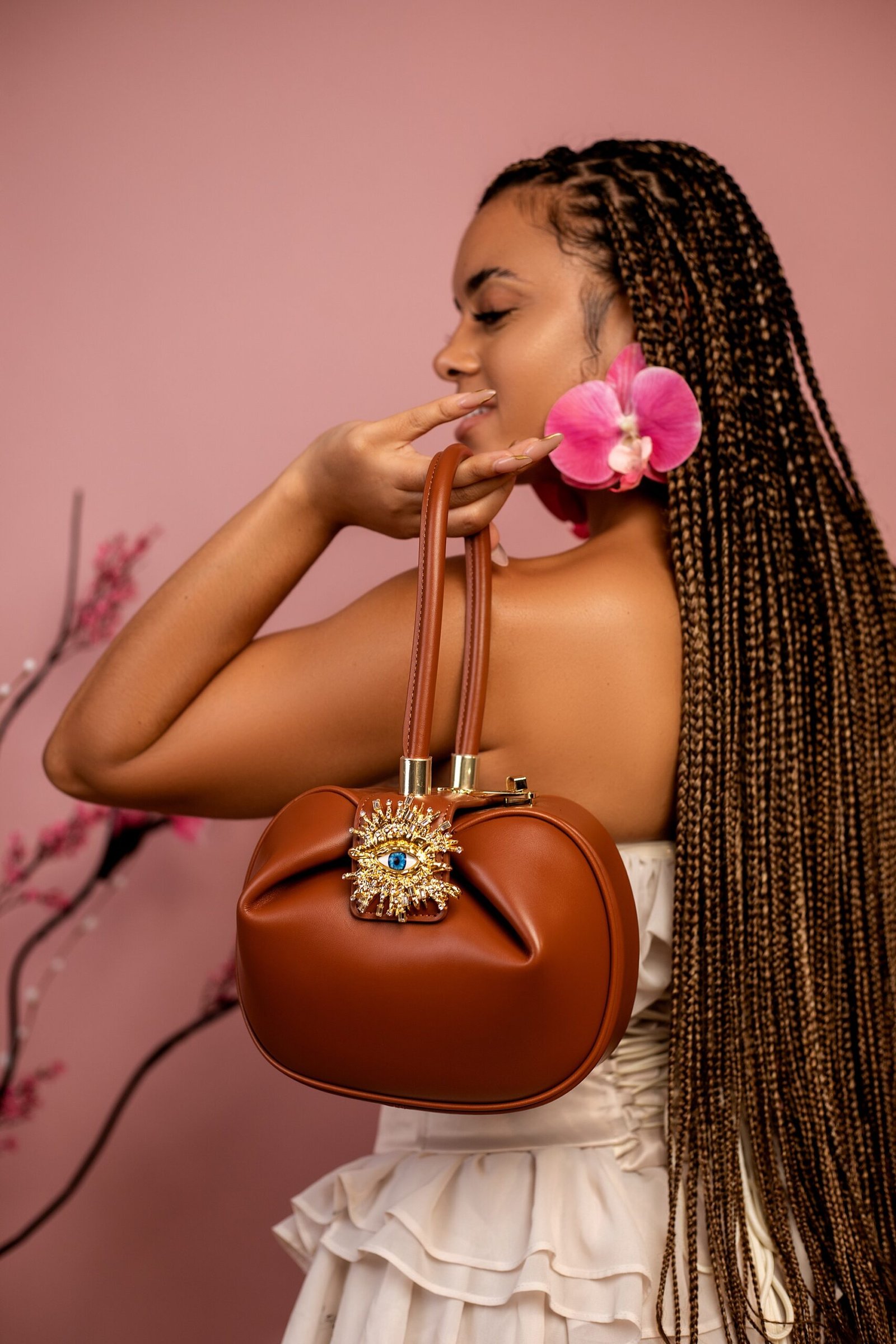 Rooted in tradition and reimagined through a modern lens, ẸKWÙ draws its name and spirit from the calabash a vessel of nourishment, beauty, and strength across African culture. Handcrafted from genuine cowhide leather and crowned with Belle Amour’s iconic Eye Brooch, this structured masterpiece reflects the timeless elegance of a woman who carries both legacy and style.